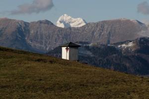 Za razgled po okolici se bo treba povzpeti še malo višje do kapelice, kjer je tudi sicer vpisna knjiga. V primernem vremenu se odpre pogled po dolini Idrijce, čez Tolminsko Bohinjske gore, Javornike, pa do Triglava, Porezna, Blegoša…