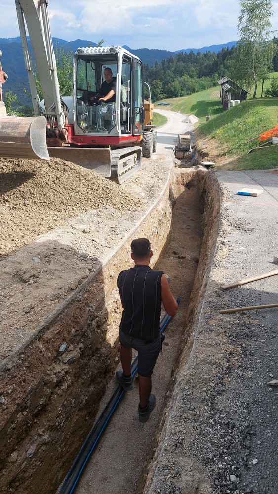 Gradnja vodovoda Petelinov grič–Dolenje Brdo pa obsega izgradnjo vodovoda C, obnovo vodohrana Dolenje Brdo, izgradnjo štirih novih reducirnih jaškov in prevezave na obstoječe vodovode na območju poteka gradnje. Uvedbo izvajalca v delo smo opravili sredi junija, dela pa morajo biti po pogodbi končana do 31. avgusta prihodnje leto. Trenutno poteka vkop vodovoda iz smeri Dolenjega Brda proti Gorenjemu Brdu, vkopanih je dober kilometer novih cevi, zgrajena sta tudi dva reducirna jaška. Dela bodo po pogodbi vredna 712 tisoč evrov brez DDV-ja.