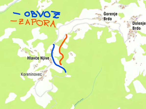 Obvoz: za osebna vozila preko naselja javne poti Gorenje Brdo – Hlavče Njive in po cesti Hlavče Njive vas – Bunker