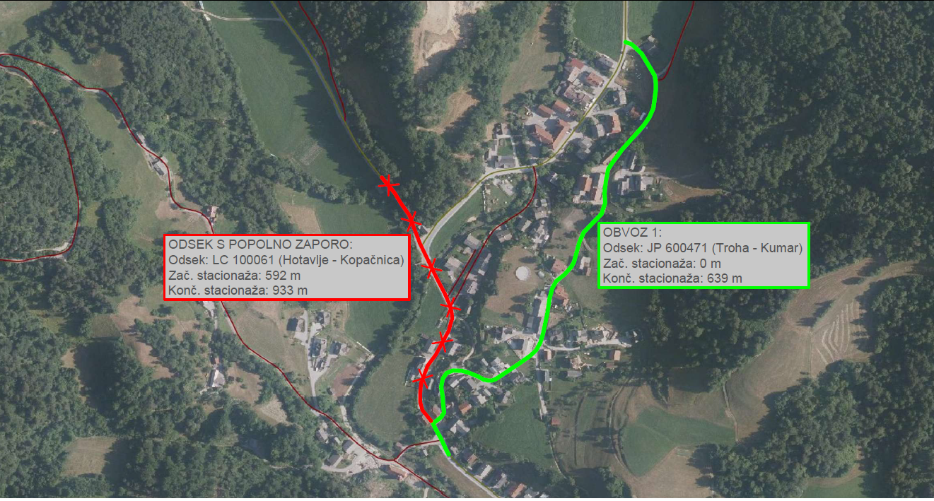 Obvoz 1: za osebna in poltovorna vozila poteka po JP 600471 Troha - Kumer
